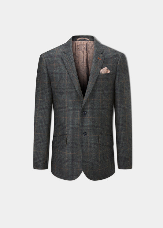 Surrey Tweed-fodrad kavaj i grön ruta - normal passform