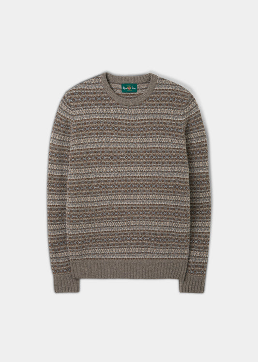 Towthorpe Fairisle Åkersork Jumper i lammull för män - Normal passform