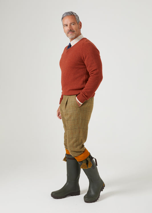 Herrjumper i Bomull och Kashmir med V-ringning i färgen Tawny