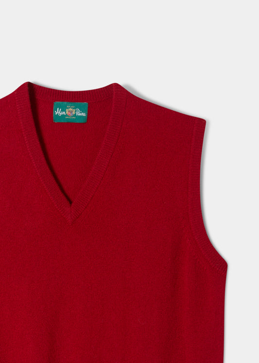 Norfolk lammullsslipover för män i Dubonnet - klassisk passform