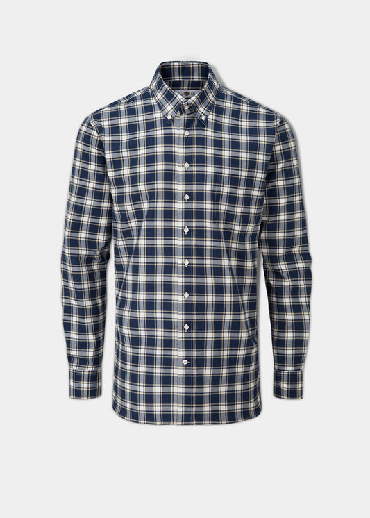 Herrskjorta i blå bomull med knappar och rutor - Normal passform