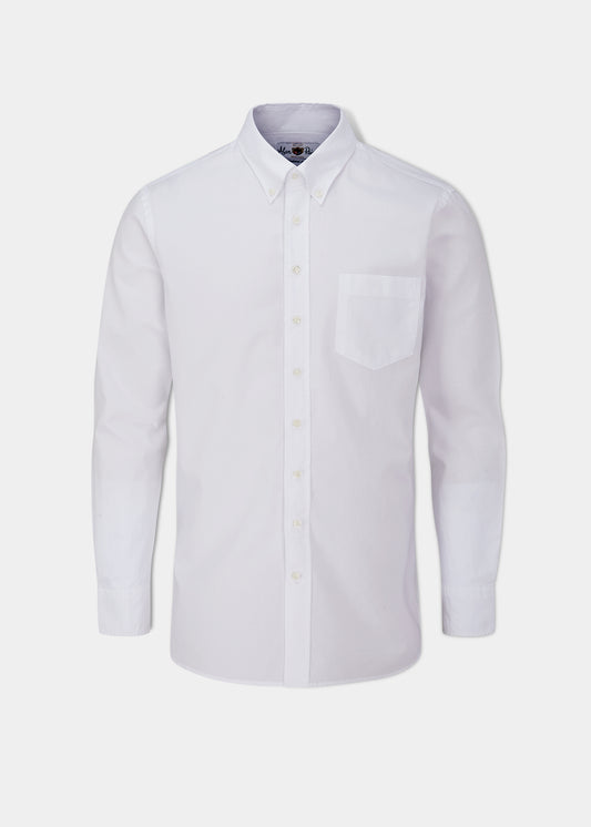 Herrskjorta i bomull med knappar, vit - Normal passform