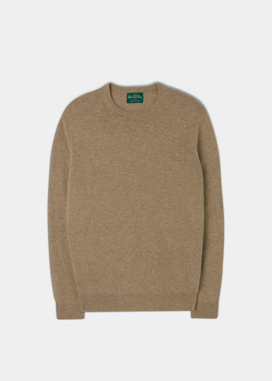 Herr Geelong Lammsull Crew Neck Tröja i Beige - Normal Passform