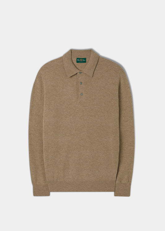 Herr Geelong Lambswool Långärmad Pikétröja i Beige - Normal Passform