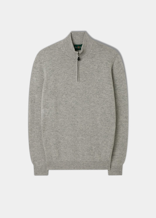 Herr Lammsull Tröja med 1/4 Dragkedja i Pärlgrå - Normal Passform