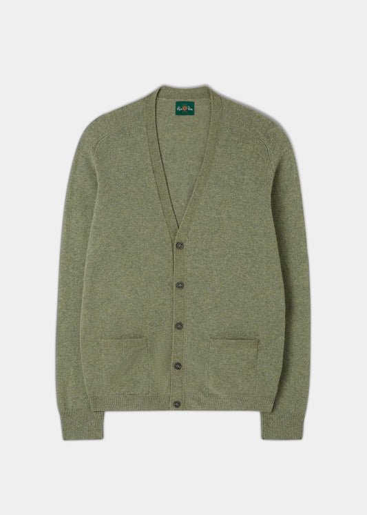 Landford Lammullströja med knäppning för män Skogsgrön - Normal passform