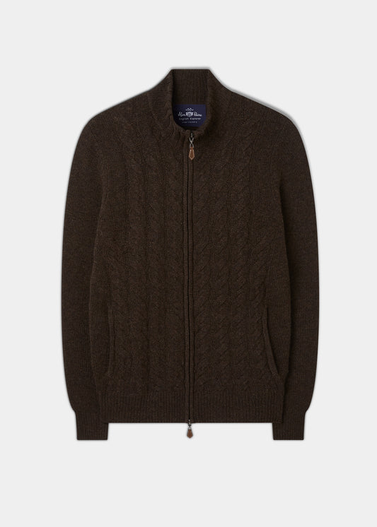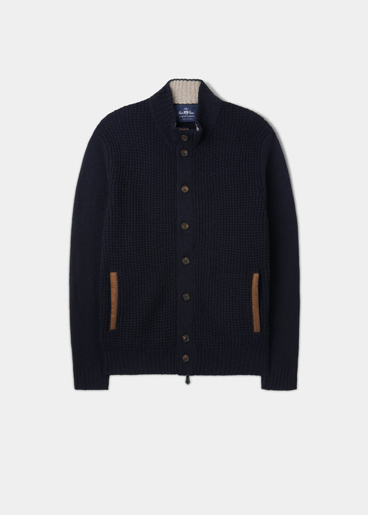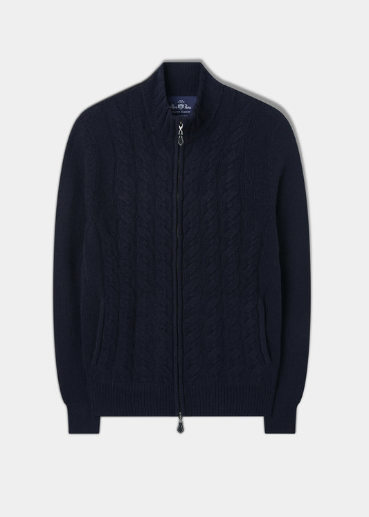 Aberfoyle kabelstickad lamullströja med dragkedja – marinblå