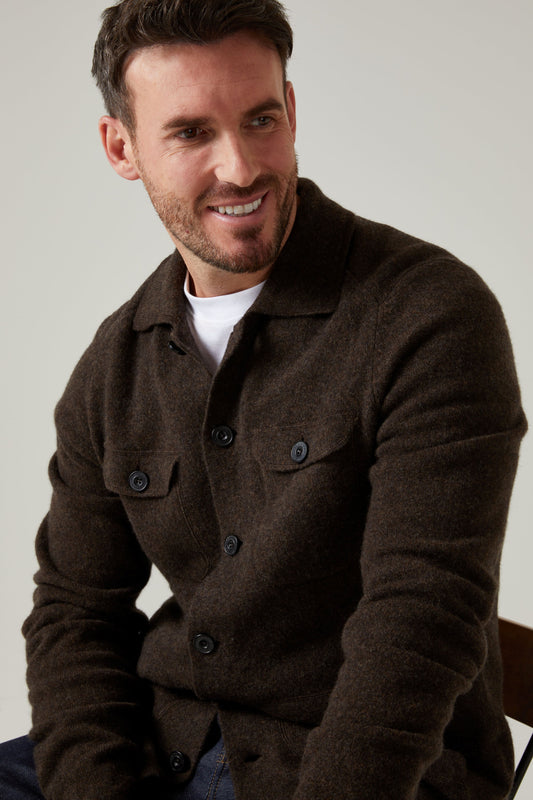 Ferndale stickad lammullskjorta för män i kakao - Normal passform