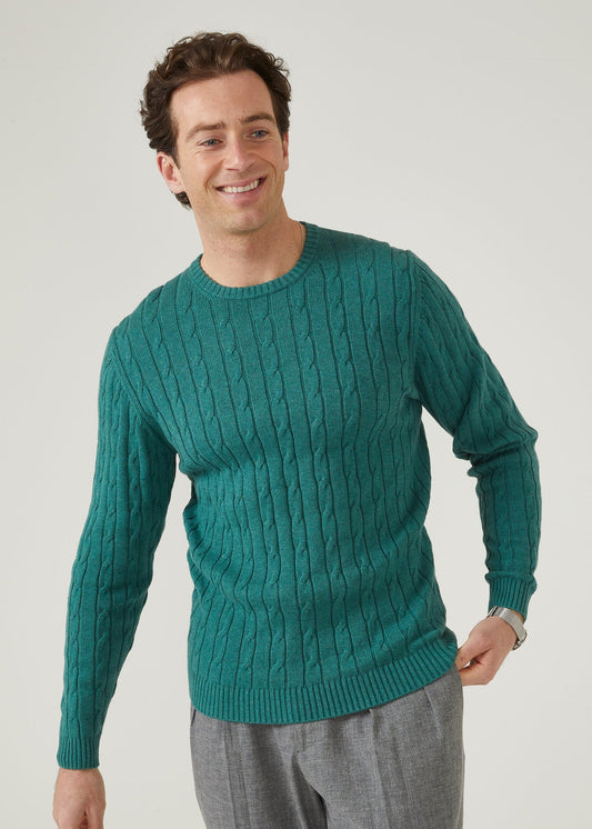 Honley Cotton Cashmere kabelstickad tröja i Moorland