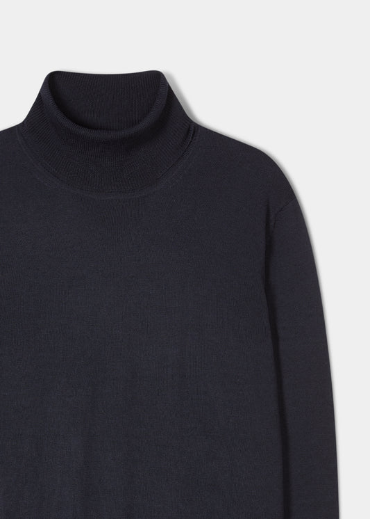 Linton Merino Wool rullhalsad tröja i mörk marinblå - normal passform