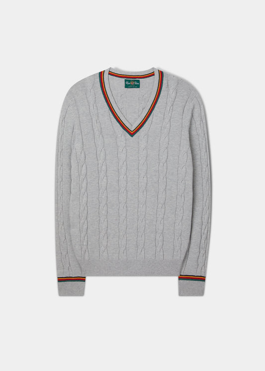 Sandford Cotton Cashmere Cable Stickad Vee Neck Jumper In Dove