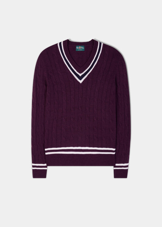 Grafton Herr Merinoull Cricket Jumper i Svart Grape - Normal passform