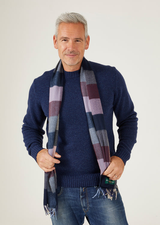 Westhay Herr Block Check Cashmere Scarf I Bordeaux