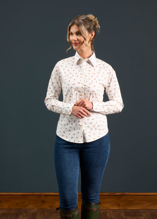 Lawen damtryckt bomullsskjorta - fasandesign