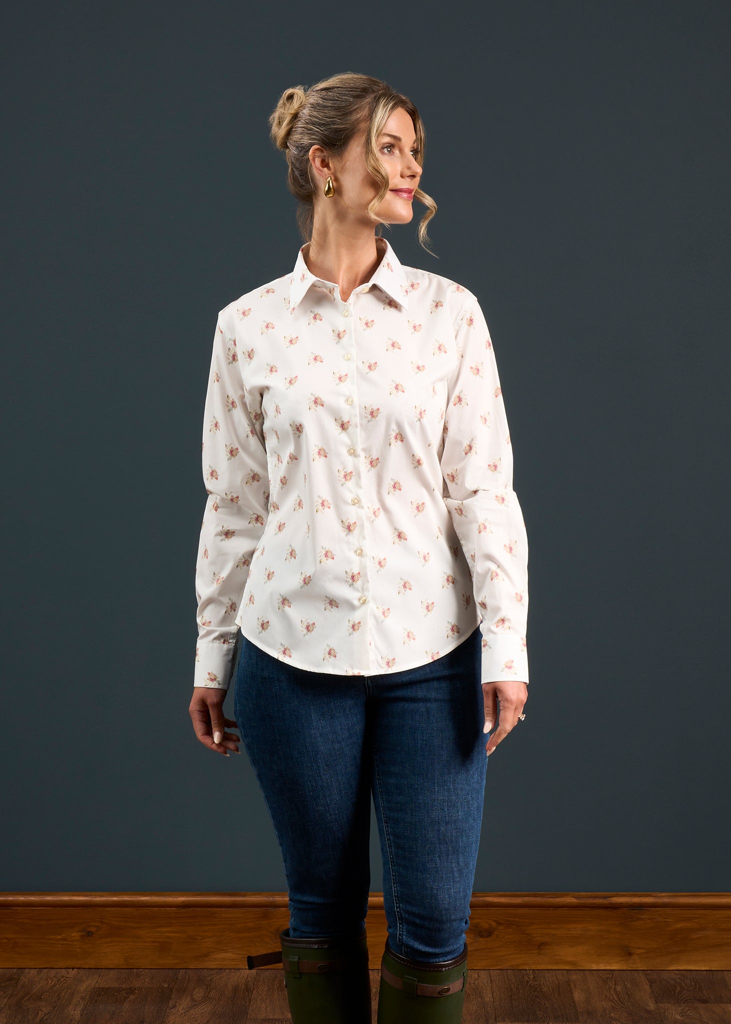 Crafted from a soft, minimal iron cotton/elastane blend, this easy-care shirt has a darted, flattering feminine fit. It's also cut to a longer length for added comfort. Team this striking floral print shirt with your favourite gilet or pop under a jacket for country walks in style.