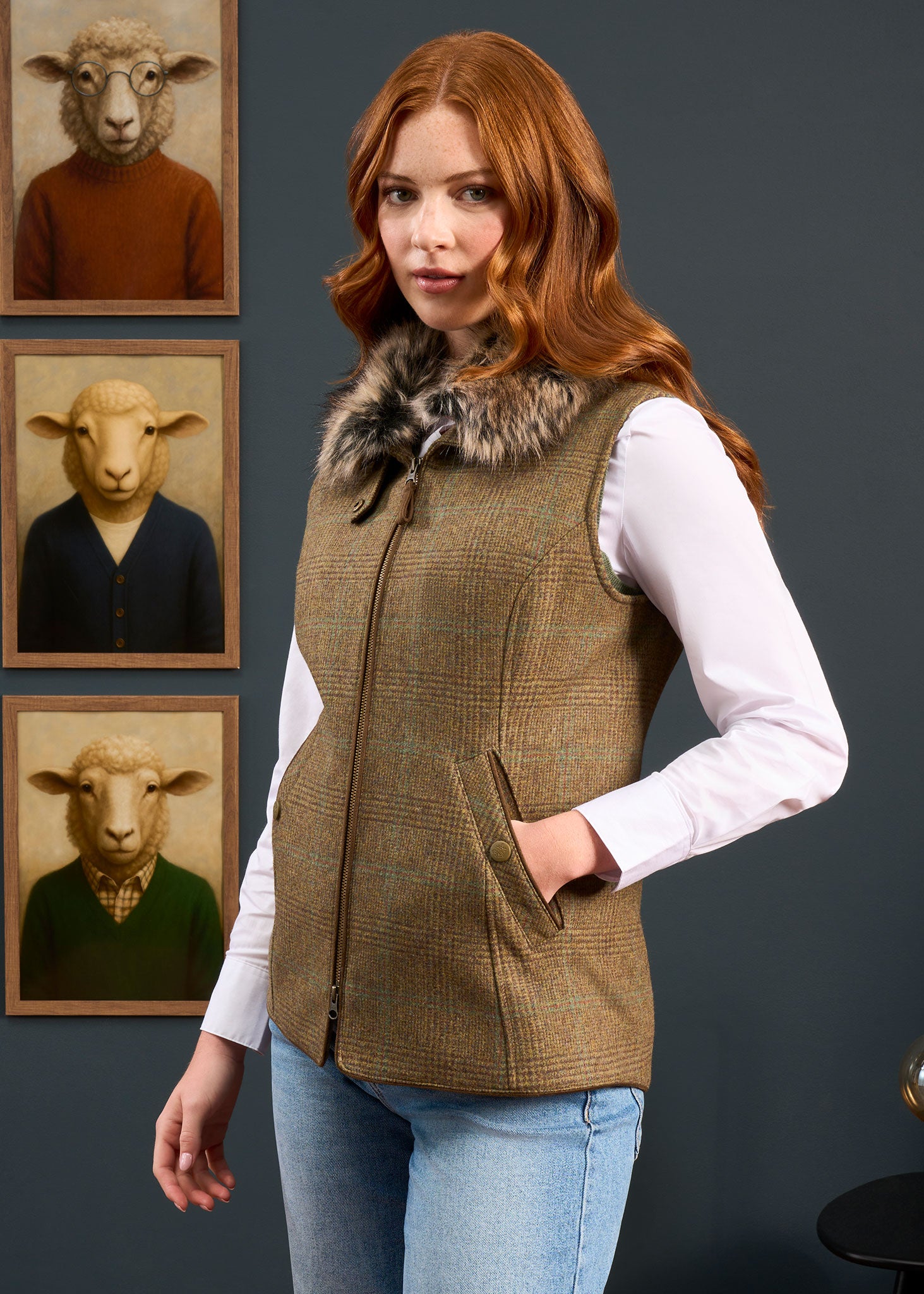 Elevate your style with our Surrey Ladies Tweed Gilet! Crafted in stunning Marsh, this gilet is perfect for adding warmth and sophistication to any outfit. Its luxurious tweed material and elegant design will make you stand out in any setting. Don't compromise on style or comfort - choose our Surrey Ladies Tweed Gilet today!