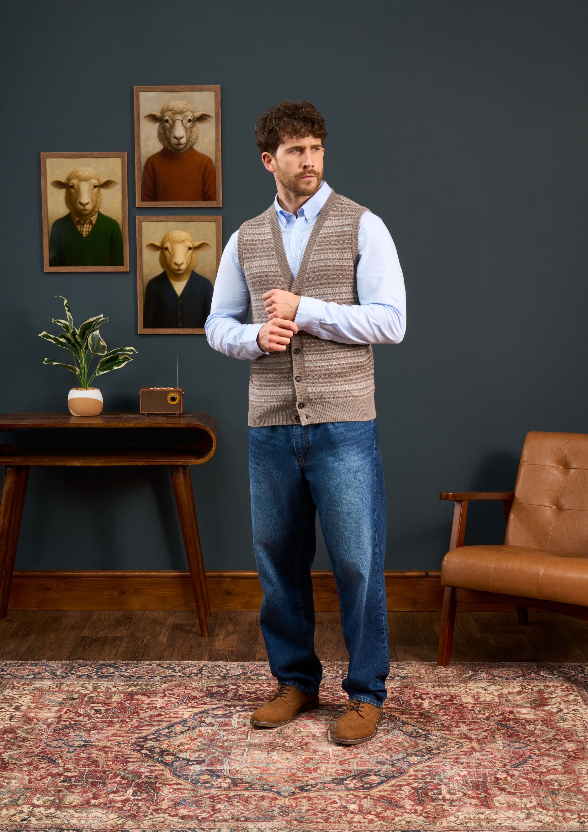 Elevate your style with the Maywick Men's Lambswool Fair Isle Waistcoat in Vole. Crafted from soft lambswool, this waistcoat offers warmth and comfort while showcasing a timeless Fair Isle pattern. Perfect for layering, it combines traditional craftsmanship with modern appeal to keep you looking sharp and feeling cosy throughout the season..